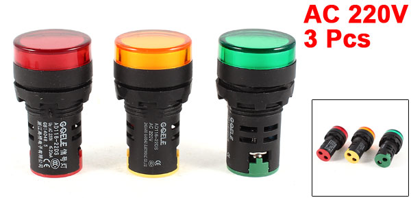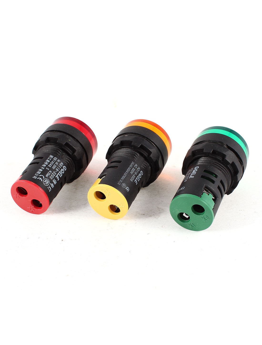 3 x AC220V 20mA Energy Saving LED Indicator Lamp Light Green Yellow Red