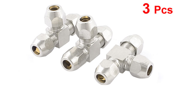 3 x Air Pneumatic 6mm Tube 3 Way T Shaped Quick Connector Coupler Silver Tone