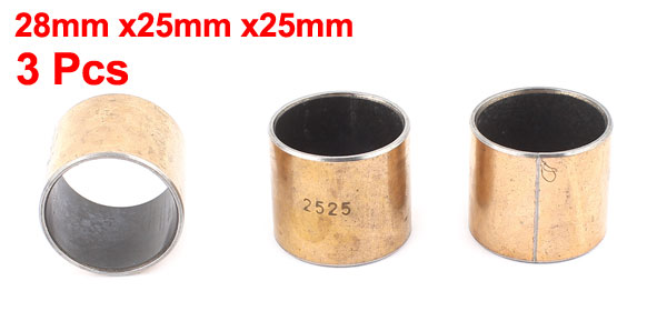 Details3 x Copper Tone Self Lubricating Metal Plain Bearing Sleeve 28x25x25mm  Product Name Plain Bearing Sleeve Total Size 28x25x25mm / 1.1" x 0.98" x 0.98"(L*OD*ID) Material Metal Color Copper Tone Weight 68g Package Content 3 x Plain Bearing Sleeve