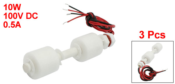 Product Name Floating Switch Model No. ZP10010-2-52 Max Contact Rating 10W Max Switching Voltage 100V DC Max Switching Current 0.5A Max Breakdown Voltage 220V DC Max Carry Current 1A Max Contact Resistance 100mΩ Temperature Rating -10 / +85 °C Float Ball Material P.P Float Body Material P.P Thread Dia(Approx) 9.5mm / 0.374" Switch Body Size 24 x 110mm / 0.9" x 4.3"(Max D*H) Cable Length 36cm / 14.2" Color White Net Weight 80g Package Content 3 x Floating Switch - Reviews