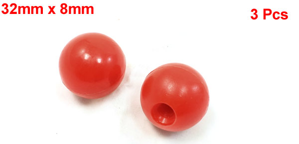 3 x Red Threaded Ball Knob 32mm Dia 8mm Bore for Joystick Machine Handle