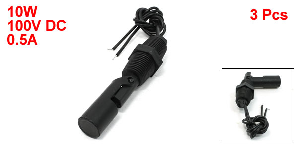 Product Name Floating Switch Model No. ZPC3 Max Contact Rating 10W Max Switching Voltage 100V DC Max Switching Current 0.5A Max Breakdown Voltage 220V DC Max Carry Current 1A Max Contact Resistance 100mΩ Temperature Rating -10 / +85 °C Material Plastic, PP Thread Dia(Approx) 20mm / 0.79" Thread Length 45mm / 1.77" Switch Total Length 105mm / 4.1" Cable Length 34cm / 13.4" Color Black Net Weight 79g Package Content 3 x Floating Switch - Reviews