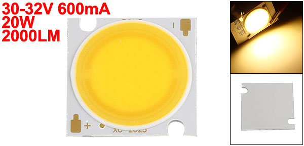 Product Name COB LED Lamp Chip Rated Voltage 30-32V Luminous Flux 2000LM Color Temperature 3000-3500K Power 20W Current 600mA Light Color Warm White Material Aluminum Color Silver Tone, Orange Size 25 x 25mm/ 0.98" x 0.98" (L*W) Luminous Surface 23mm/ 0.9" Weight 2g Package Content 1 x COB LED Lamp Chip - Reviews