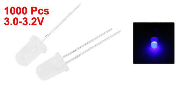 Product Name Emitting Diode Voltage Current 3.0-3.2V Wavelength 450nm-455nm Luminous Intensity 300mcd-400mcd Material Metal, Plastic Light Color Blue Total Size 27 x 6mm/ 1.1" x 0.24" (L*D) Main Color White, Silver Tone Weight 251g Package Content 1000(±2%) x Emitting Diode - Reviews