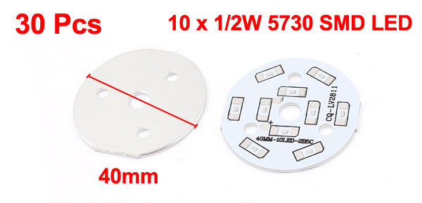 30 Pcs 10 x 1/2W 5730 SMD LED DIY Circle Aluminum PCB Circuit Board 40mm Dia