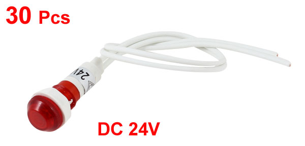30 Pcs 10mm Mounted Hole Red Indicator Pilot Light Lamp DC 24V