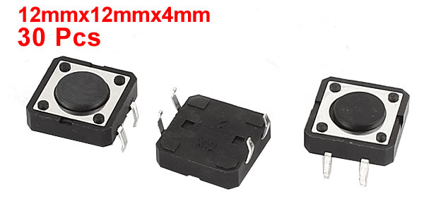 30 Pcs 12mmx12mmx4mm 4Pins SMD Momentary Push Button Tact Tactile Micro Switches