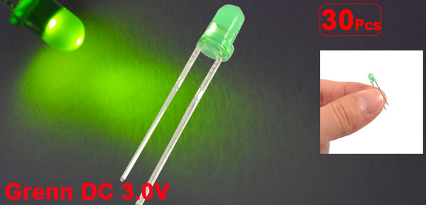 30 Pcs 2 Terminals Round Head Superbright Green LED Light Diodes