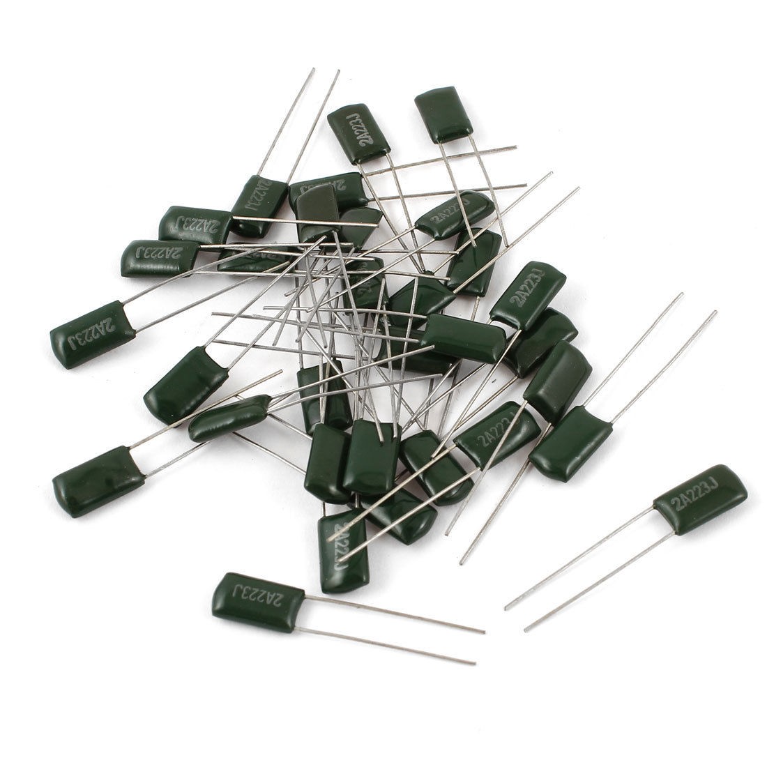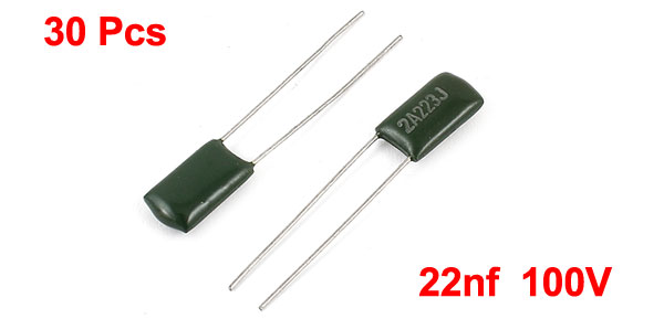 30 Pcs 22nf Polyester Film Capacitor Radial Lead 100V 2 Pins