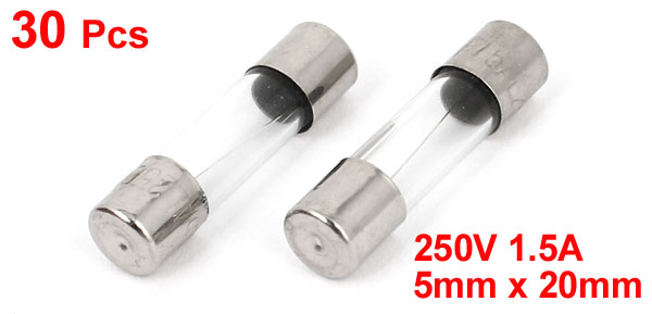 30 Pcs 250V 1.5A F1.5AL Quick Fast Blow Cartridge Glass Tube Fuses 5mm x 20mm