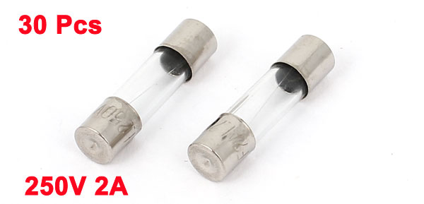 Product Name Glass Tube Fuses Quantity 30 Features Fast Blow(F) Low Breaking Capacity(L) Rated Voltage 250V Rated Current 2A Body Size 5 x 20mm/ 0.2" x 0.8"(D*L) Material Glass, Metal Color Silver Tone, Clear Weight 20g Package 30 x Glass Tube Fuses - Reviews