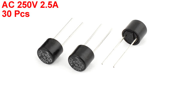 Product Name Fuse Rating 250V 2.5A Each Body Size 8 x 8mm/ 0.31" x 0.31" (D*T) Each Pin 1.9cm / 0.75" Material Electronic Parts, Metal Color Silver Tone, Black Weight 22g Package 30 Pcs x Fuses - Reviews