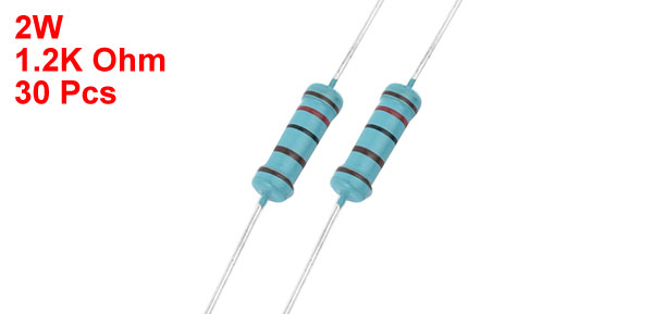 Product Name Metal Film Resistors Power Rating 2W Resistance 1.2K Ohm Tolerance ±1% Total Length(Approx.) 6.3cm /2.5" Body Size 4.5 x 14.5mm / 0.18" x 0.57" (D*L) Main Color Blue Weight 26g Package Content 30 Pcs x Metal Film Resistors - Reviews
