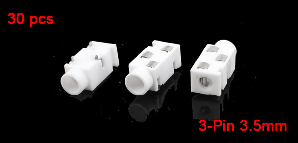 30 Pcs 3-Pin 3.5mm Female Headphone Stereo Socket Jack Adapter White