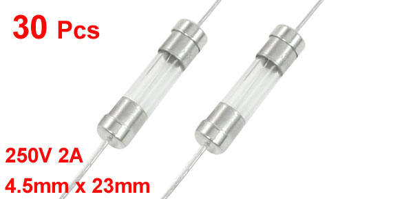 30 Pcs 4.5mm x 23mm Axial Lead Glass Fuses Holder 250V 2A