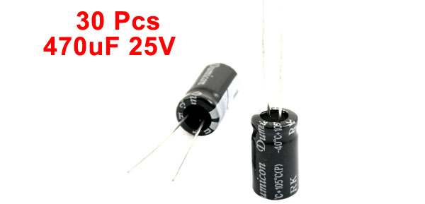 30 Pcs 470uF 25V 105C Radial Electrolytic Capacitors Black 8x15mm