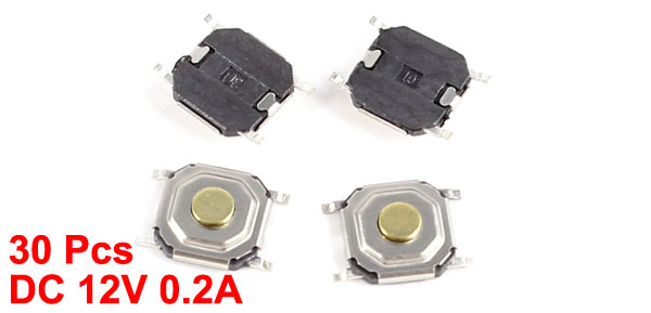30 Pcs 4x4x1.5mm SMD Momentary 4 Pin Tact Tactile Micro Switch DC 12V 0.2A