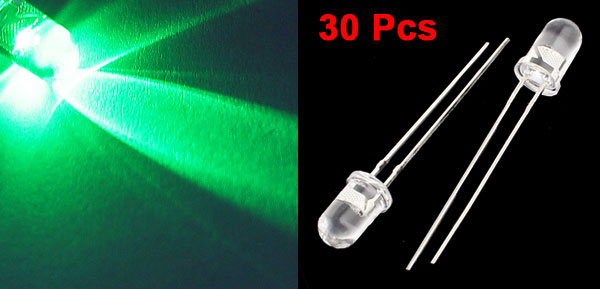 30 Pcs 5mm Dia Round Head Flash Green LED Bulb Light Emitting Diodes