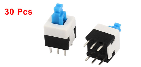 30 Pcs 6 Pins Square Shaped 8mmx8mm Latching Action DPDT Mini Push Button Switch