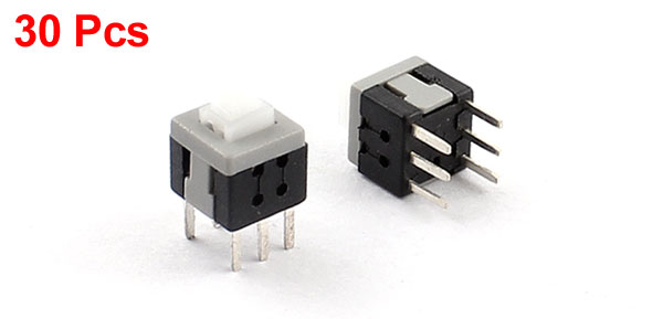 Main Color Black, White Product Name Tactile Switch Net Weight 9g Country of Manufacture CHINA Pin Pitch 2mm Package Content 30Pcs x Tactile Switch Material Plastic, Metal Contact Type Latching Total Size 5.8 x 5.8 x 10.3mm/0.23" x 0.23" x 0.4"(L*W*H) Pin Number 6 - Reviews