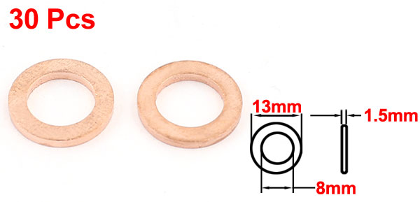 30 Pcs 8mmx13mmx1.5mm Copper Crush Washer Flat Oil Seal Ring Gasket