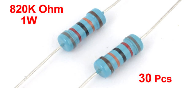 30 Pcs Axial Lead 1W 1% 820K Ohm Flameproof Electronic Metal Film Resistor