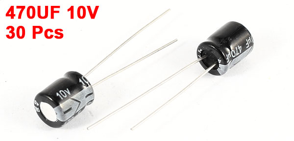 Details30 Pcs Electrolytic Capacitor Radial Lead 10V 470uF 8x6mm  Product Name Electrolytic Capacitor Type Radial Maximum Temperature -40°C to +105°C Voltage 10V Capacitance 470uF Size 6 x 8mm/0.24" x 0.3"(D*H) Lead Space 2mm Lead Length 2.5mm/0.1", 2mm/0.078" External Material Aluminum Total Net Weight 14g Main Color Black,Gray Package Content 30 x Electrolytic Capacitors