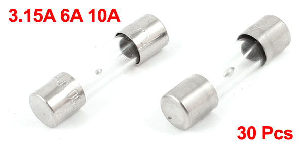 30 Pcs Electron Component 3.15A 6A 10A Glass Fuse Tube 5 x 20mm