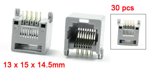 30 Pcs Gray Plastic Shell 8P8C RJ45 PCB Jack Female Connector 14.5mm Height