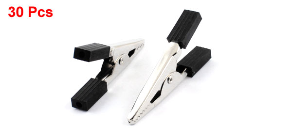 30 Pcs Insulated Alligator Clips Test Lead Clamps Black 50mm x 22mm x 7mm