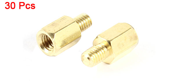 Product Name Standoff Hexagonal Spacer Thread Size M3 Male to Female 4mm+6mm Overall Size(Approx) 10 x 5mm / 0.4" x 0.2" (L*Max.D) Material Brass Color Gold Tone Net Weight 27g Package Content 30 Pcs x Standoff Hexagonal Spacer - Reviews