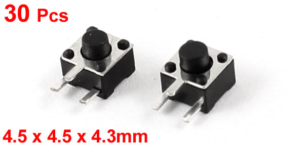 30 Pcs PCB Mount Momentary 3 Pin SPST Tactile Tact Switch Black 4.5x4.5x4.3mm
