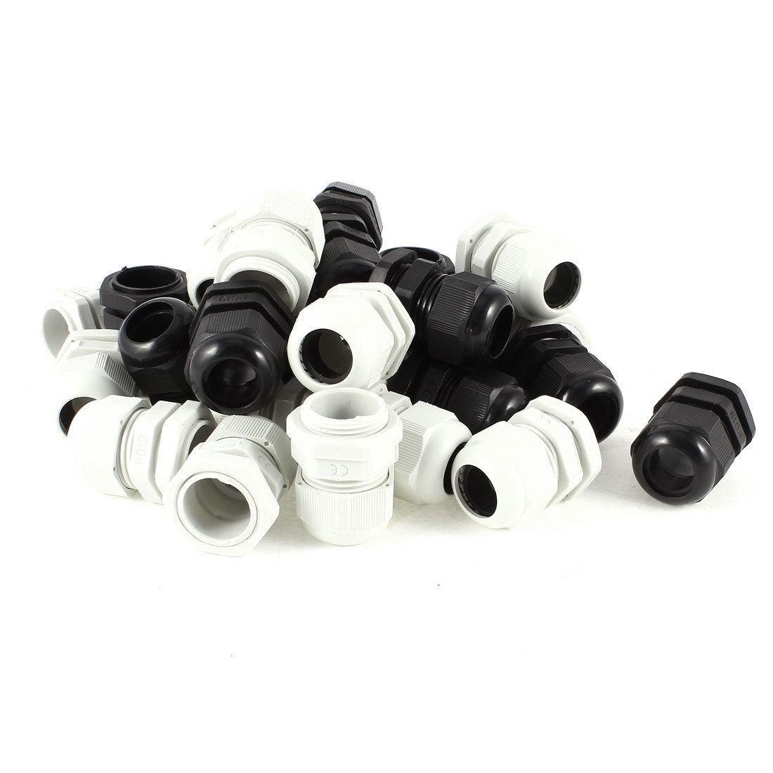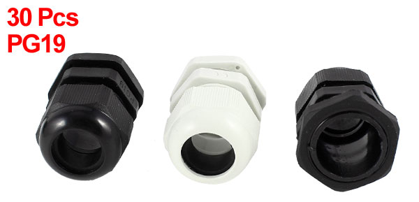 30 Pcs PG19 Waterproof Connector Cable Gland Black White 12-15mm