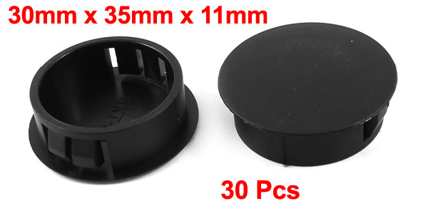 Product Name Locking Hole Plugs Type SKT-30 Mount Type Snap in Panel Hole Dia 30mm/1.2" Head Dia 35mm / 1.4" Height 11mm/0.43" Material Plastic Color Black Weight 88g Package Content 30 Pcs x Locking Hole Plugs - Reviews