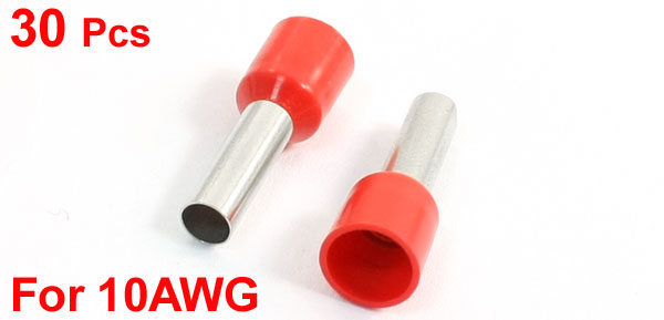 30 Pcs Red Plastic Cover Pipe Pre Insulated Terminals for 10AWG Wire