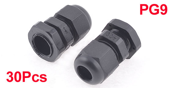 30 Pcs Waterproof PG9 Plastic Cable Glands Fasteners Black
