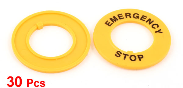 Product Name Protective Cover Fit for Round Switch Head Diameter 22mm / 0.9" Pattern EMERGENCY, STOP Total Size (Approx) 60 x 2mm / 2.4" x 0.08" (D*T) Material Plastic Color Yellow Weight 150g Package Content 30 x Protective Cover