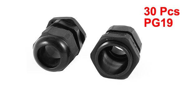 30 Pieces 12-15mm Cables Waterproof PG19 Black Plastic Glands Connectors