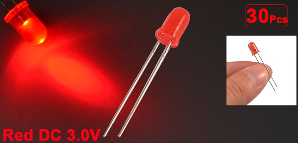 30 Pieces 5mm 2 Pin Round Head Superbright Red LED Light Diodes