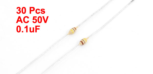 30 Pieces AC 50V 0.1uF Axial Color Ring Ceramic Capacitors 10%