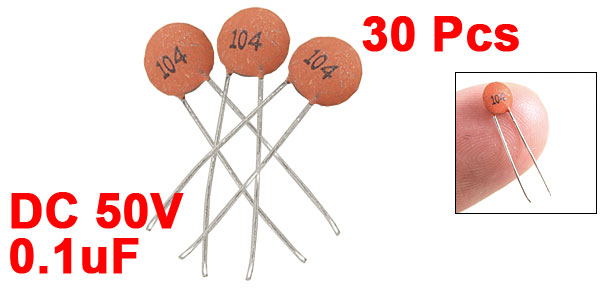 Product Name Ceramic Disc Capacitor Features Low Voltage Withstand Voltage DC 50V Capacitance 0.1uF Capacitance Tolerance ±80% / -20% Lead Pitch Spacing 3mm / 0.118" Body Dimension(Each) 5 x 1.5mm / 0.197" x 0.06"(D*T) Weight 3g Color As Picture Shown Package Content 30x Ceramic Disc Capacitors - Reviews