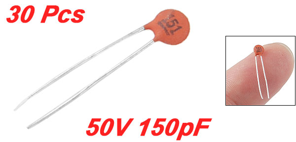 Product Name Ceramic Disc Capacitor Features Low Voltage Withstand Voltage DC 50V Capacitance 150pF Capacitance Tolerance ± 10% Lead Pitch Spacing 2mm/0.08'' Body Dimension(Each) 3 x 1.5mm / 0.1" x 0.05"(D*T) Weight 2g Color As Picture Show Package Content 30 x Ceramic Disc Capacitors - Reviews