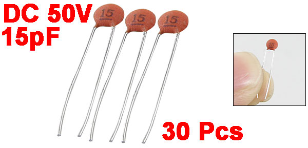 Product Name Ceramic Disc Capacitor Features Low Voltage Withstand Voltage DC 50V Capacitance 15pF Capacitance Tolerance ± 10% Lead Pitch Spacing 2.5mm / 0.1'' Body Dimension(Each) 3 x 1.5mm / 0.1" x 0.05"(D*T) Weight 2g Color As Picture Show Package Content 30 (± 10%) x Ceramic Disc Capacitors - Reviews