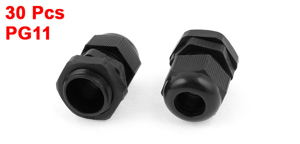 30 x Black Plastic IP67 Waterproof PG11 5-10mm Diameter Cable Gland