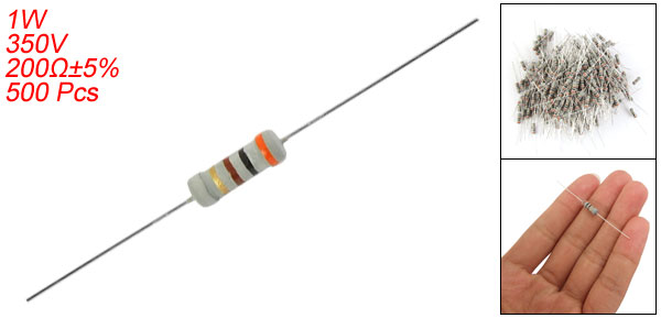 Product Name Carbon Film Resistor Material Type Carbon Film Rated Power 1 W Resistance Value 300 ohm Tolerance ±5% Withstand Voltage 350V Body Size (Approx.) 10.7 x 3.7mm /0.42" x 0.15" (L*Dia.) Lead Size (Each End) 23 x 0.4mm/0.9" x 0.016" (L*Dia.) Color As Picture Shown Weight 173g Package Content 500 Pcs(±2%) x Carbon Film Resistors  - Reviews