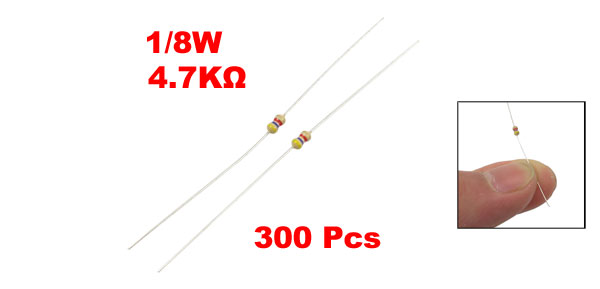 Product Name Metal Film Resistor Rated Power 1/8W Tolerance ± 5% Resistance Value 4.7KΩ Body Size 2 x 4mm/0.08" x 0.2" (D*L) Leads Dia (Approx.) 0.4mm/0.02" Total Length (Approx.) 58mm/2.3" Color As Picture Shown Weight 25g Package Content 300 Pcs (± 2%) x Metal Film Resistors - Reviews