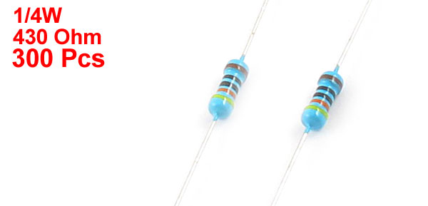 300 Pcs Axial Lead 1/4W 1% Tolerance 430 Ohm Flameproof Metal Film Resistor