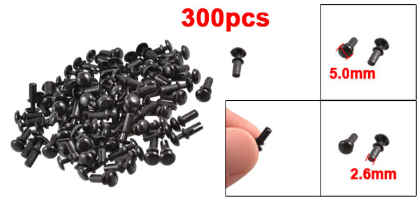 300 Pcs Black Nylon 2.6mm Bottom Dia Push Clips Rivets Fasteners R2655