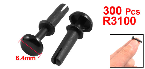 Product Name Push Rivet Part No. R3100 Head Dia.(Approx.) 6.4mm/ 0.25" Head Thickness(Approx.) 1.6mm/ 0.063" Bottom Dia.(Approx.) 3.0mm/ 0.118" Push In Height(Approx.) 10mm/ 0.39" Total Height(Approx,) 18.5mm/ 0.73" Fit for Panel Thickness 7.5-8.5mm Material Nylon Color Black Net Weight 45g Package Content 300±2% Pcs x Push Rivet - Reviews