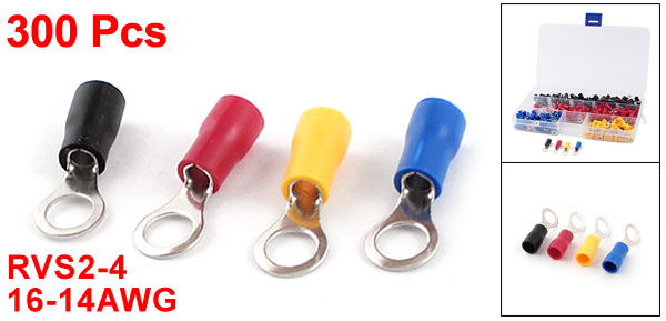 300 Pcs RVS2-4 Insulated Electrical Ring Crimp Terminal Connector 16-14AWG